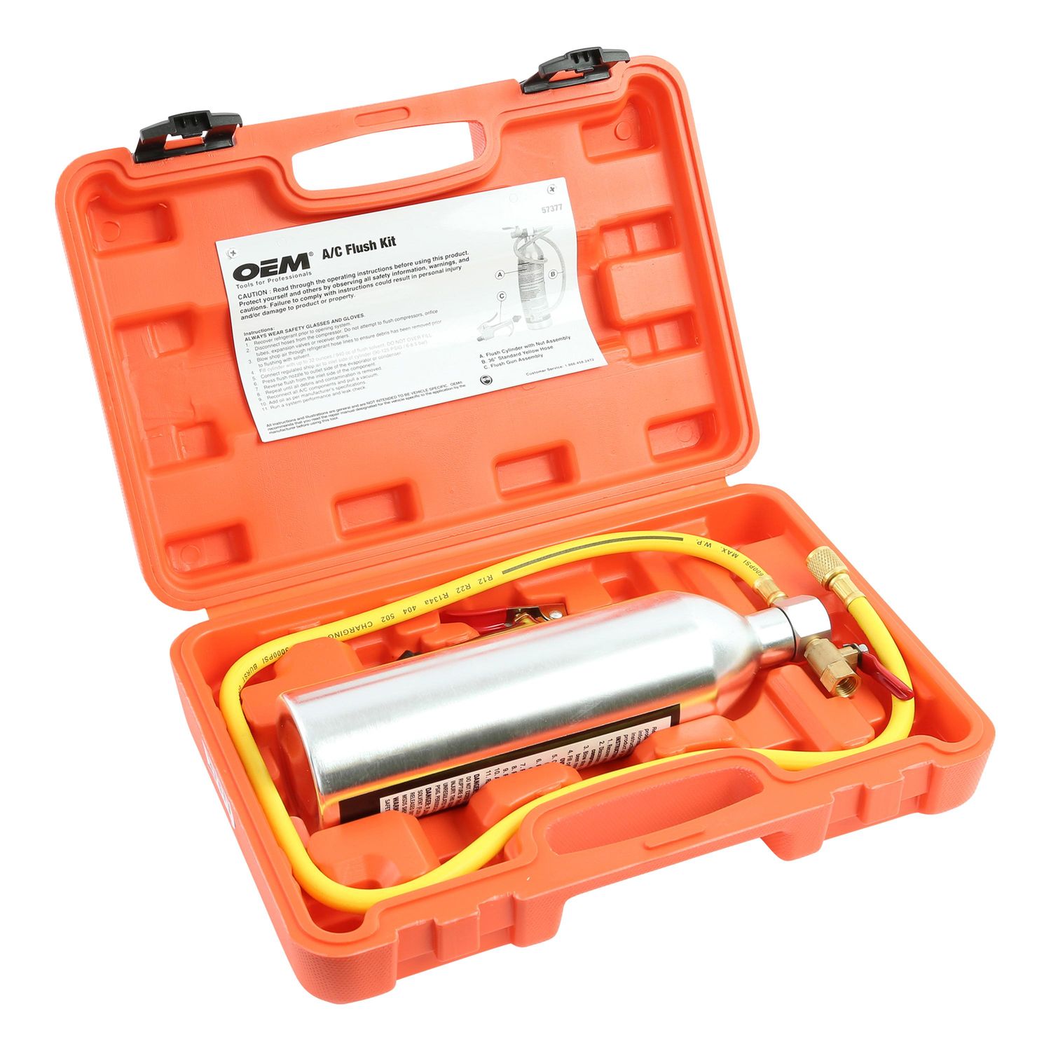 Vehicle AC Flushing Equipment. Replaces older style flush kits and nozzles produced for use with R-113. Designed for use with 2405 2406 2032 2128.